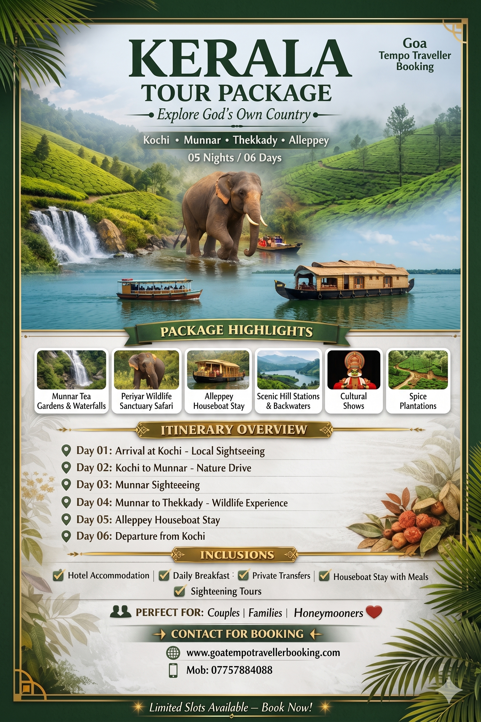Goa Tempo Traveller Booking provides reliable and comfortable travel services for groups across Goa and beyond. We arrange exciting trips to Kerala, Malvan, Hampi, Gokarna, and Dudhsagar, ensuring a smooth and memorable journey.
